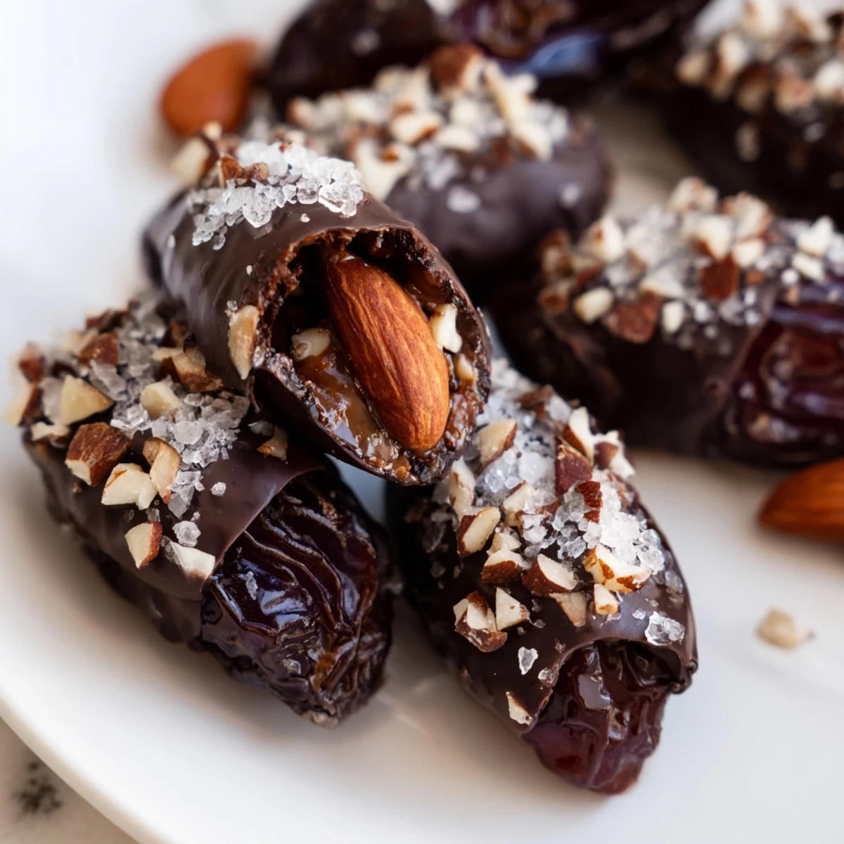 These stuffed dates combine the natural caramel-like sweetness of Medjool dates with creamy almond butter and a crisp dark chocolate shell.