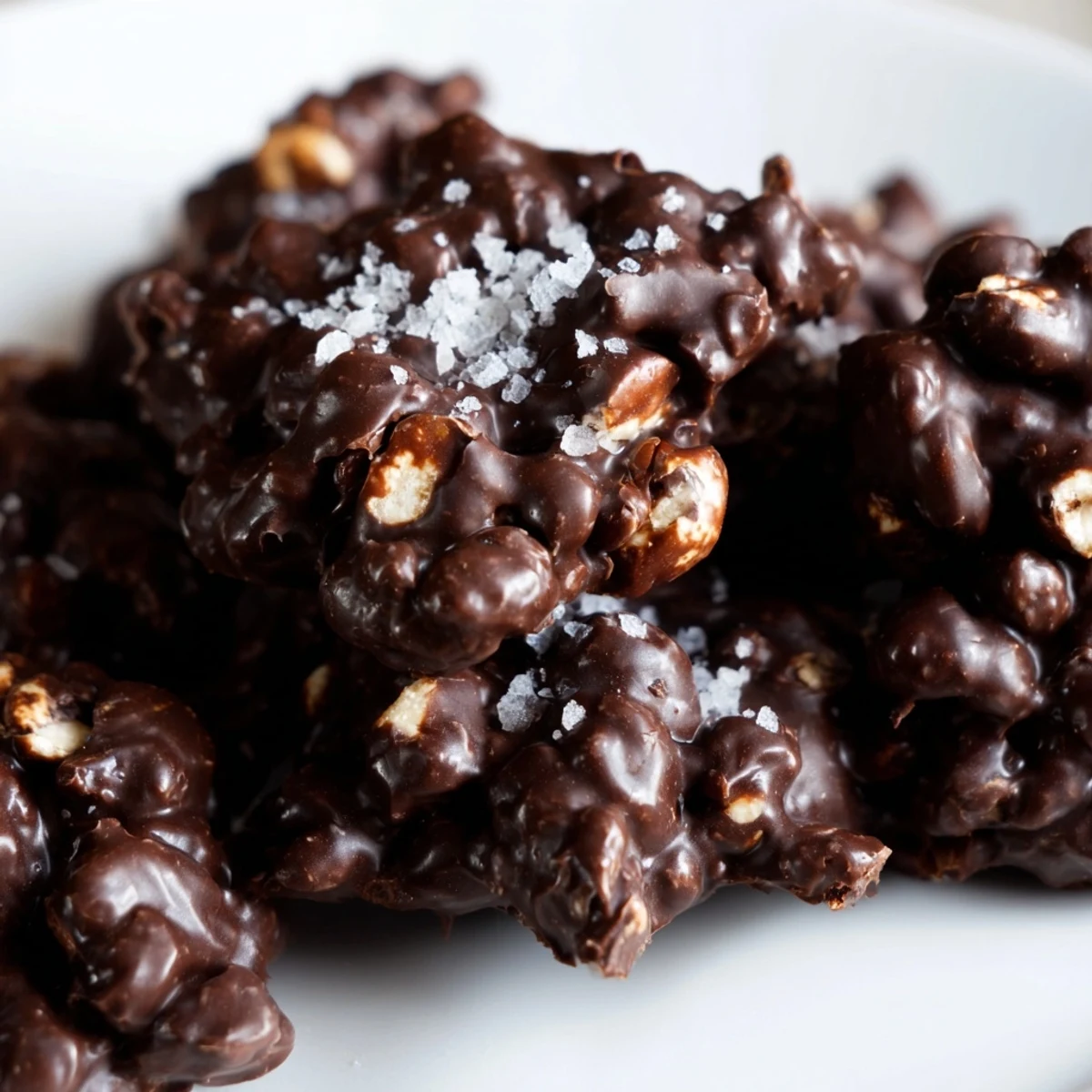 - Sprinkle each cluster with just a few flakes of sea salt while the chocolate is still soft enough to hold them.