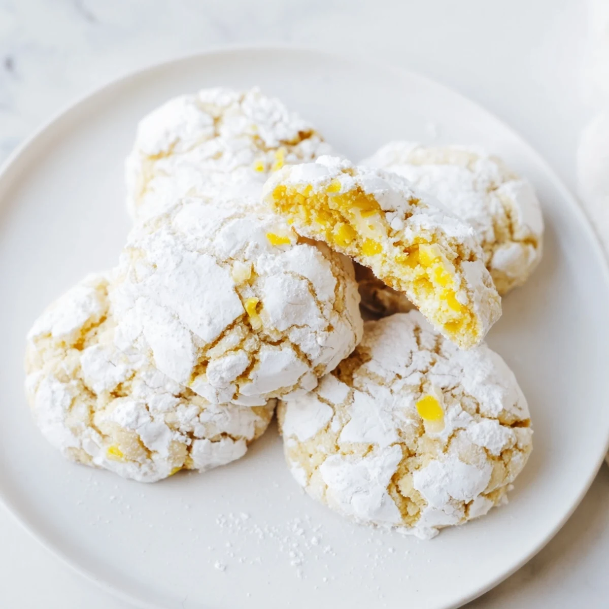 The powdered sugar coating creates a barrier that causes the dough to expand outward rather than rise, forming those signature cracks as the cookies bake. The high moisture content from eggs and lemon juice also contributes to the crinkled appearance.