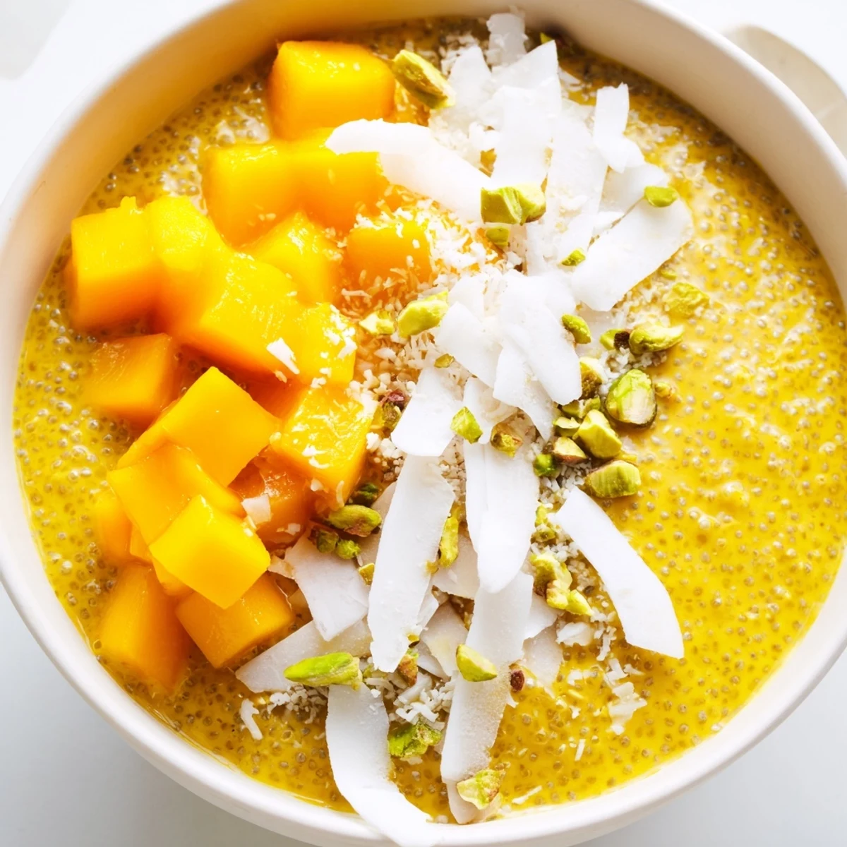 This vibrant breakfast bowl brings together the tropical sweetness of fresh mango with rich coconut milk pudding infused with aromatic saffron. The chia seeds create a creamy, satisfying texture while packing in omega-3s and fiber. After a quick 10-minute prep, let the mixture chill for at least two hours or overnight to develop its luscious consistency. Top with shredded coconut, nuts, and fresh fruit for a nourishing start to your day that's naturally vegan, gluten-free, and dairy-free.