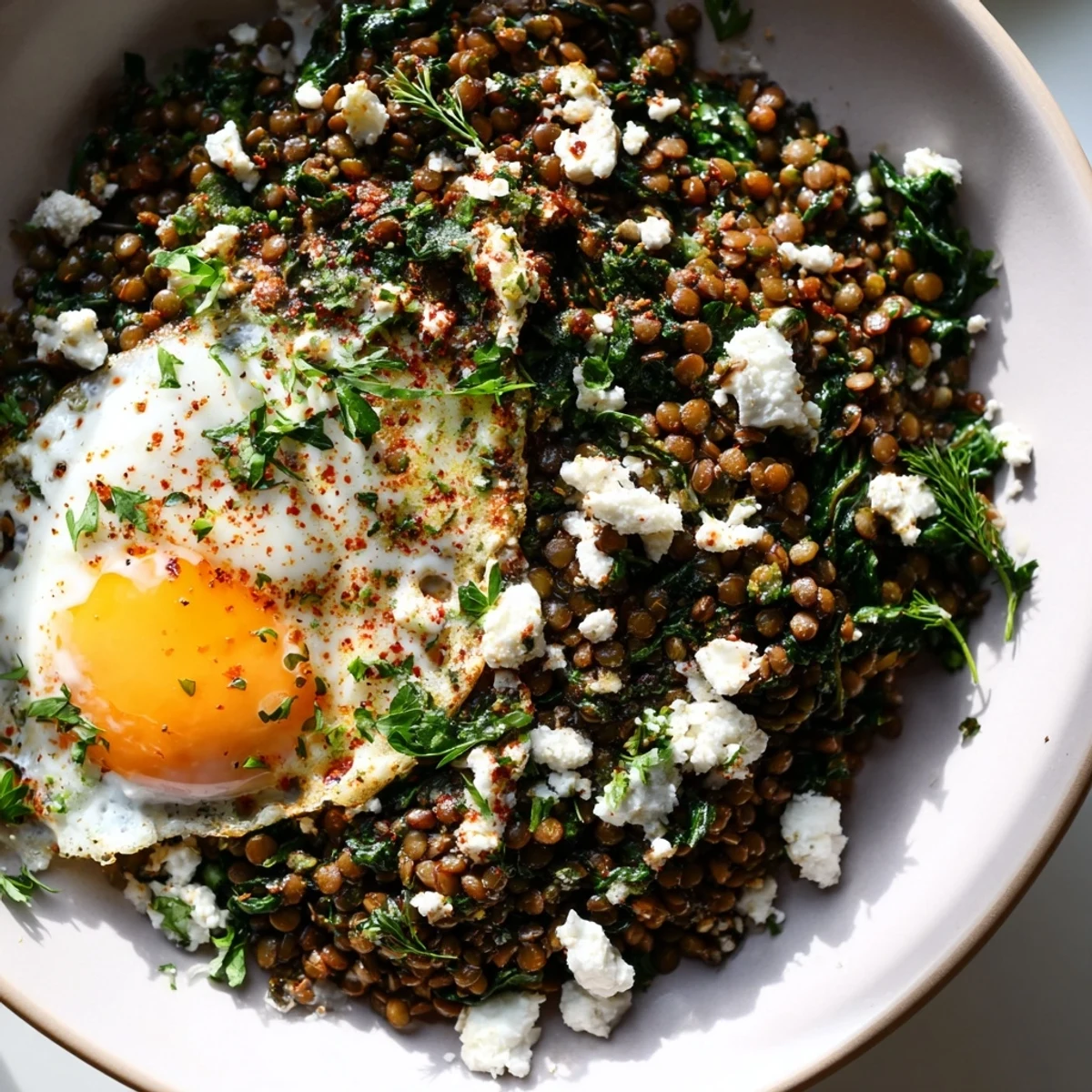 A perfectly poached egg creates this creamy sauce when you break the yolk into the lentils. If you want something easier, a fried egg with crispy edges adds texture. Or skip the egg entirely and let the feta provide that savory richness.