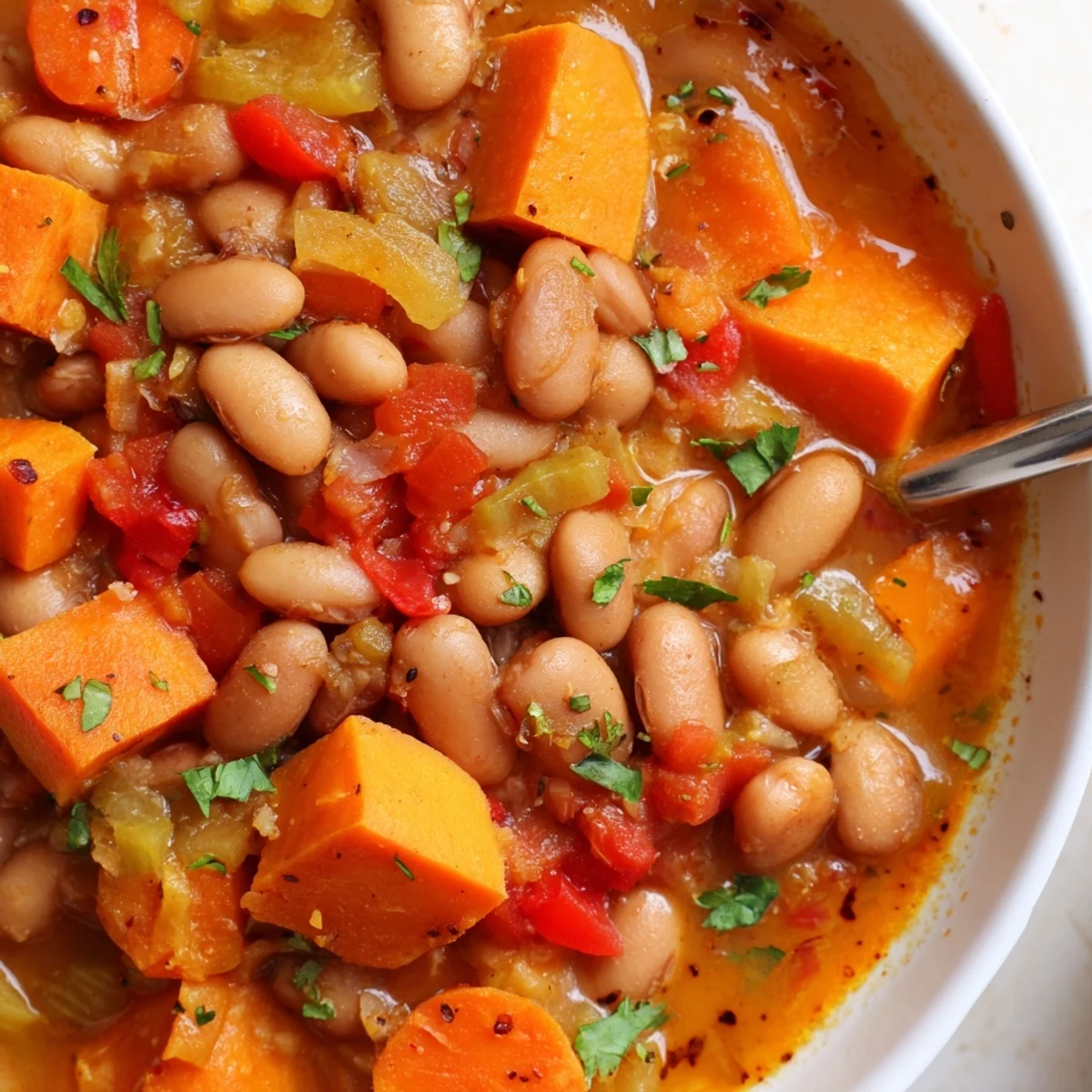 This hearty bowl combines smoky pinto beans, tender sweet potato cubes, diced tomatoes and aromatic spices. Begin by sautéing onion, carrots and celery, toast smoked paprika and cumin, then simmer with vegetable broth until sweet potatoes are tender. Stir in lime and chopped cilantro; partial blending adds silkiness. Swap beans or add a chipotle for deeper heat. Makes 4 servings in under an hour.